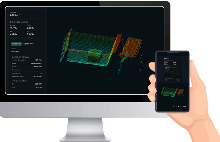 Scanners de precisão de carga para caminhões, esteiras e vagões.